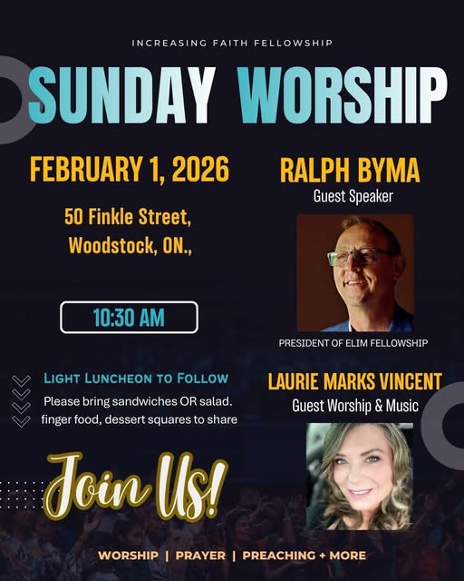 I'll be ministering at Increasing Faith Fellowship on Feb 1st. If you're in the area, please join Increasing Faith Fellowship and be blessed. Please let me know you're there.